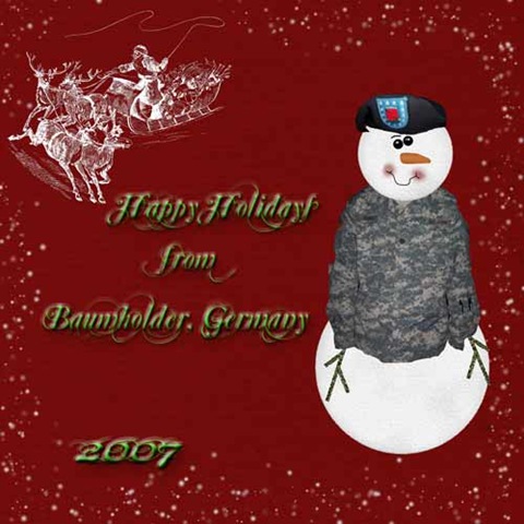 Christmas is over and I am so sad. I didn't get to do most of the things I wanted to do with my husband this year. I did however get some great scrapping done! My nephew is such a ham! Every time he sees the camera he makes a face. He even started looking for it on Christmas Eve! Speaking of Christmas Eve.... we went to my parents' house. Thank goodness they are stationed here in Baumholder as well. We had finger foods and boy were the kids not happy with having to wait to open their gifts. My sister and her family came from Heidelberg. We went to her house for Christmas Day before we had friends over that night. Brandon loves to hear the kids talk about him. I think it really makes his day to see that they like having him around. All in all we had a really great Christmas. I got a new digital camera and hubby got games and a scope. Anywho.... here are the LO's I did last night and this morning.
