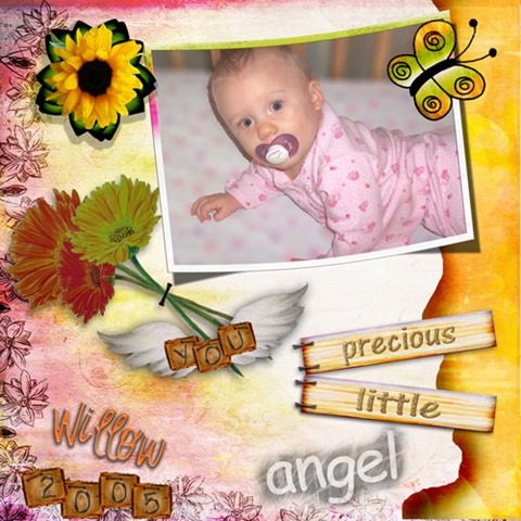 The above page is of my oldest niece Willow. The kit used is a Fairy Tale by Sunfire available at Treasures To Scrap