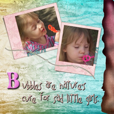 The page on the left is of my nieces blowing bubbles. The page on the right is of my DH and the dog when DH was sick. The Kit used for both pages is the Treasures To Scrap Treasure Chest for January.